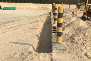 - Installation of Geotextile as a first layer prior to installation of HDPE Geomembrane Lining.